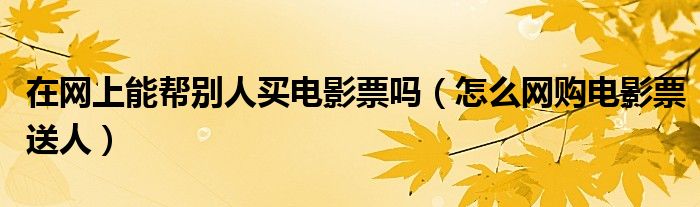 大家好,综合小编来为大家讲解下。在网上能帮别人买电影票吗,怎么网购电影票送人这个很多人还不知道,现在让我们一起来看看吧!
