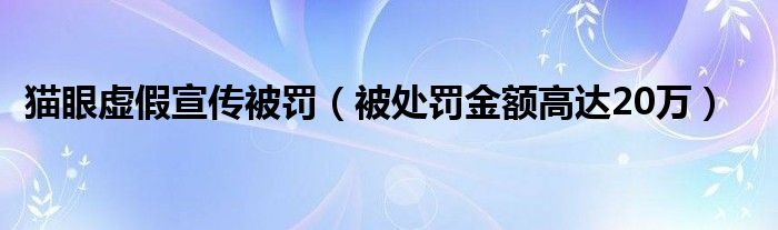 大家好,综合小编来为大家讲解下。猫眼虚假宣传被罚,被处罚金额高达20万这个很多人还不知道,现在让我们一起来看看吧!