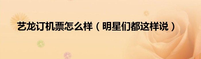 大家好,综合小编来为大家讲解下。艺龙订机票怎么样,明星们都这样说这个很多人还不知道,现在让我们一起来看看吧!