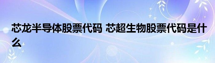 大家好,小元来为大家解答问题。芯龙半导体股票代码,芯超生物股票代码是什么,这个很多人还不知道,现在让我们一起来了解下吧!