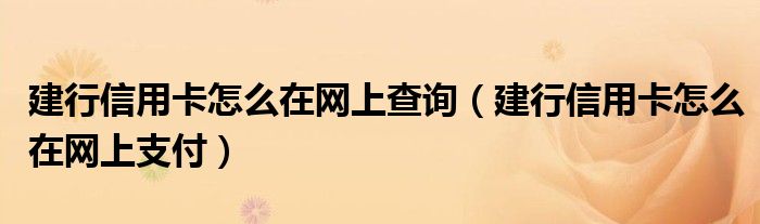 大家好,综合小编来为大家讲解下。建行信用卡怎么在网上查询,建行信用卡怎么在网上支付这个很多人还不知道,现在让我们一起来看看吧!
