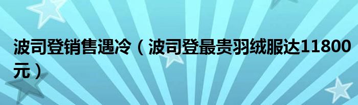 大家好,综合小编来为大家讲解下。波司登销售遇冷,波司登最贵羽绒服达11800元这个很多人还不知道,现在让我们一起来看看吧!
