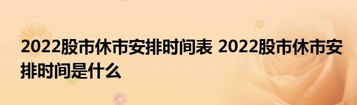 导读 大家好,小元来为大家解答问题。2022股市休市安排时间表,2022股市休市安排时间是什么,这个很多人还不知道,现在让我们一起来了解下吧!