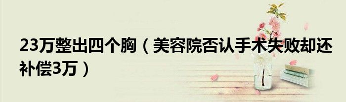 大家好,综合小编来为大家讲解下。23万整出四个胸,美容院否认手术失败却还补偿3万这个很多人还不知道,现在让我们一起来看看吧!