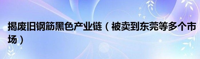 大家好,综合小编来为大家讲解下。揭废旧钢筋黑色产业链,被卖到东莞等多个市场这个很多人还不知道,现在让我们一起来看看吧!