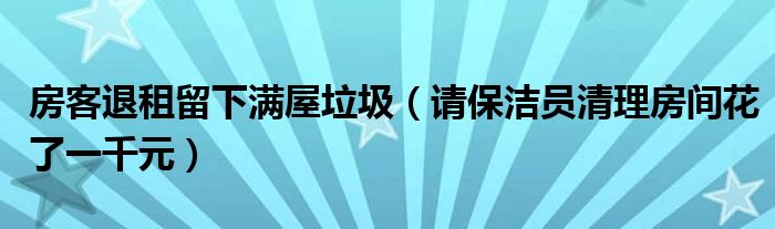大家好,综合小编来为大家讲解下。房客退租留下满屋垃圾,请保洁员清理房间花了一千元这个很多人还不知道,现在让我们一起来看看吧!