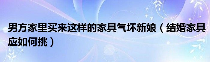 导读 大家好,综合小编来为大家讲解下。男方家里买来这样的家具气坏新娘,结婚家具应如何挑这个很多人还不知道,现在让我们一起来看看吧!1、对于