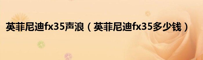 大家好,综合小编来为大家讲解下。英菲尼迪fx35声浪,英菲尼迪fx35多少钱这个很多人还不知道,现在让我们一起来看看吧!