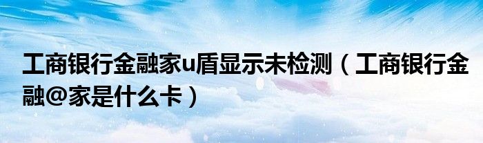 导读 大家好,综合小编来为大家讲解下。工商银行金融家u盾显示未检测,工商银行金融@家是什么卡这个很多人还不知道,现在让我们一起来看看吧!1、