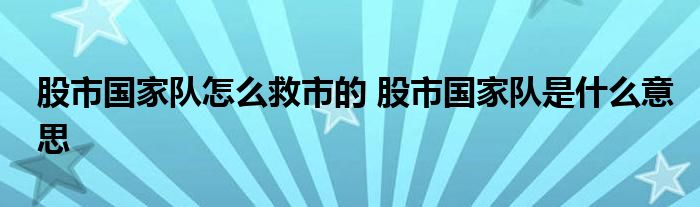导读 大家好,小元来为大家解答问题。股市国家队怎么救市的,股市国家队是什么意思这个很多人还不知道,现在让我们一起来了解下吧!