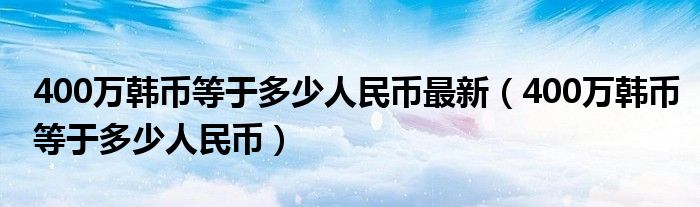 导读 大家好,综合小编来为大家讲解下。400万韩币等于多少人民币最新,400万韩币等于多少人民币这个很多人还不知道,现在让我们一起来看看吧!1、