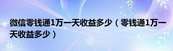大家好,综合小编来为大家讲解下。微信零钱通1万一天收益多少,零钱通1万一天收益多少这个很多人还不知道,现在让我们一起来看看吧!