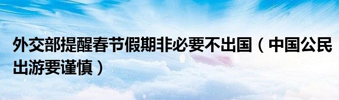 大家好,综合小编来为大家讲解下。外交部提醒春节假期非必要不出国,中国公民出游要谨慎这个很多人还不知道,现在让我们一起来看看吧!