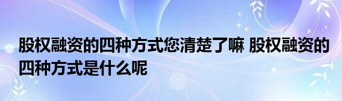 导读 大家好,小元来为大家解答问题。股权融资的四种方式您清楚了嘛,股权融资的四种方式是什么呢这个很多人还不知道,现在让我们一起来了解下吧