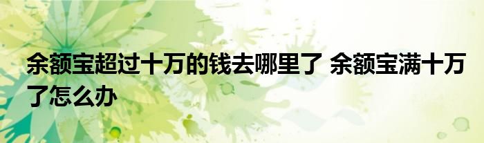 导读 大家好,小呗来为大家解答以上的问题余额宝超过十万的钱去哪里了,余额宝满十万了怎么办这个很多人还不知道,现在让我们一起来了解下吧!