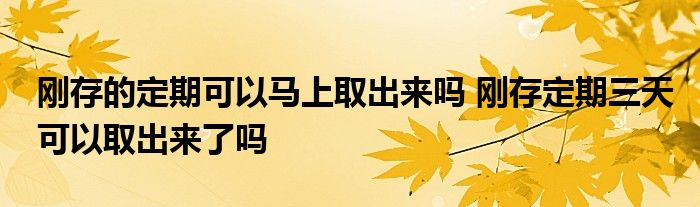 导读 大家好,小呗来为大家解答以上的问题刚存的定期可以马上取出来吗,刚存定期三天可以取出来了吗这个很多人还不知道,现在让我们一起来了解下吧