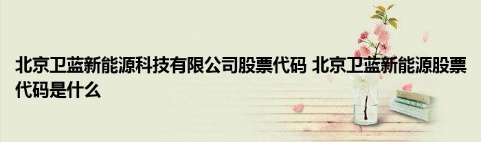 导读 大家好,小元来为大家解答问题。北京卫蓝新能源科技有限公司股票代码,北京卫蓝新能源股票代码是什么,这个很多人还不知道,现在让我们一起