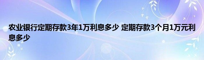导读 大家好,小呗来为大家解答以上的问题农业银行定期存款3年1万利息多少,定期存款3个月1万元利息多少这个很多人还不知道,现在让我们一起来了解