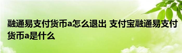 大家好,小呗来为大家解答以上的问题融通易支付货币a怎么退出,支付宝融通易支付货币a是什么这个很多人还不知道,现在让我们一起来了解下吧!