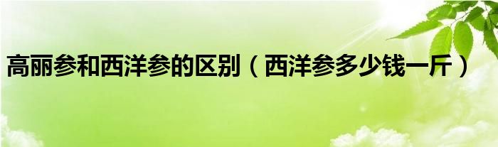 4、通过以上介绍,相信大家对高丽参和西洋参的区别也有深一步的了解了吧!其实这两者的最鲜明的对比就是高丽参属于热性药材,西洋参属于性凉之物,大家一定要记住两者是药性是相反的。接下来我们再继续了解西洋参多少钱一斤?现西洋参价格国产长支在550-600元之间,短支650-700元,进口短支1100-1200元,长支900-950元。