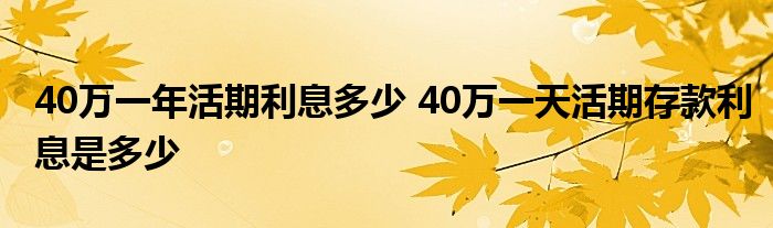 导读 大家好,小呗来为大家解答以上的问题40万一年活期利息多少,40万一天活期存款利息是多少这个很多人还不知道,现在让我们一起来了解下吧!