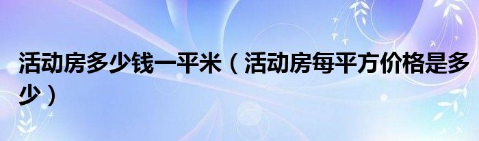 导读 大家好,综合小编来为大家讲解下。活动房多少钱一平米,活动房每平方价格是多少这个很多人还不知道,现在让我们一起来看看吧!1、修建房子是