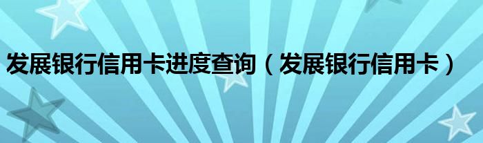 大家好,小卡来为大家解答以上问题。发展银行信用卡进度查询,发展银行信用卡很多人还不知道,现在让我们一起来看看吧!