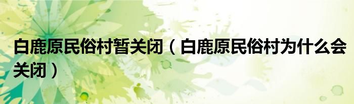 大家好,综合小编来为大家讲解下。白鹿原民俗村暂关闭,白鹿原民俗村为什么会关闭这个很多人还不知道,现在让我们一起来看看吧!