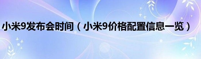 大家好,综合小编来为大家讲解下。小米9发布会时间,小米9价格配置信息一览这个很多人还不知道,现在让我们一起来看看吧!