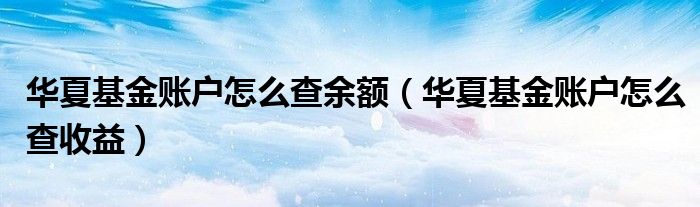 大家好,综合小编来为大家讲解下。华夏基金账户怎么查余额,华夏基金账户怎么查收益这个很多人还不知道,现在让我们一起来看看吧!