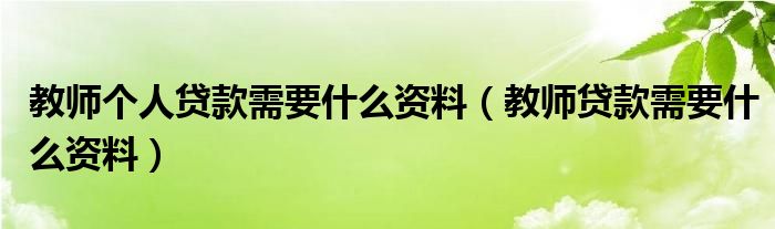 导读 大家好,综合小编来为大家讲解下。教师个人贷款需要什么资料,教师贷款需要什么资料这个很多人还不知道,现在让我们一起来看看吧!教师贷款需