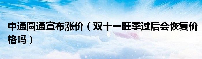大家好,综合小编来为大家讲解下。中通圆通宣布涨价,双十一旺季过后会恢复价格吗这个很多人还不知道,现在让我们一起来看看吧!