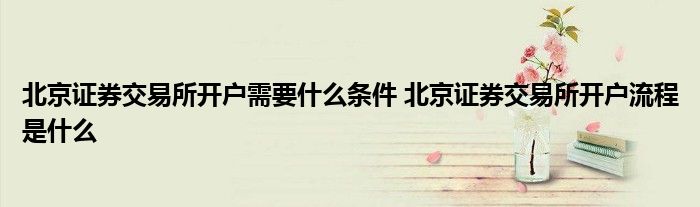 导读 大家好,小元来为大家解答问题。北京证券交易所开户需要什么条件,北京证券交易所开户流程是什么,这个很多人还不知道,现在让我们一起来了