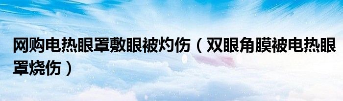 大家好,综合小编来为大家讲解下。网购电热眼罩敷眼被灼伤,双眼角膜被电热眼罩烧伤这个很多人还不知道,现在让我们一起来看看吧!