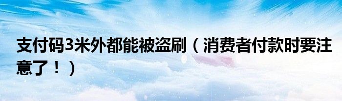 大家好,综合小编来为大家讲解下。支付码3米外都能被盗刷,消费者付款时要注意了!这个很多人还不知道,现在让我们一起来看看吧!