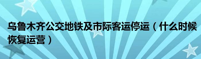 大家好,综合小编来为大家讲解下。乌鲁木齐公交地铁及市际客运停运,什么时候恢复运营这个很多人还不知道,现在让我们一起来看看吧!