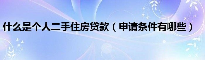 大家好,综合小编来为大家讲解下。什么是个人二手住房贷款,申请条件有哪些这个很多人还不知道,现在让我们一起来看看吧!