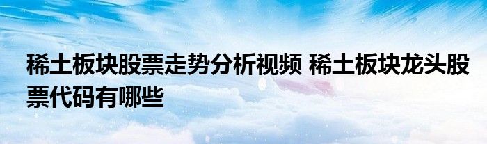 导读 大家好,小元来为大家解答问题。稀土板块股票走势分析视频,稀土板块龙头股票代码有哪些这个很多人还不知道,现在让我们一起来了解下吧!