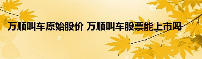 导读 大家好,小元来为大家解答问题。万顺叫车原始股价,万顺叫车股票能上市吗,这个很多人还不知道,现在让我们一起来了解下吧!