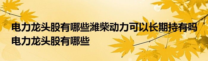 导读 大家好,小元来为大家解答问题。电力龙头股有哪些潍柴动力可以长期持有吗,电力龙头股有哪些这个很多人还不知道,现在让我们一起来了解下吧