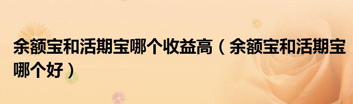 大家好,小卡来为大家解答以上问题。余额宝和活期宝哪个收益高,余额宝和活期宝哪个好很多人还不知道,现在让我们一起来看看吧!