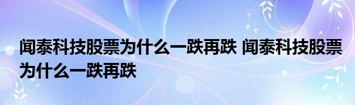 导读 大家好,小元来为大家解答问题。闻泰科技股票为什么一跌再跌,闻泰科技股票为什么一跌再跌,这个很多人还不知道,现在让我们一起来了解下吧