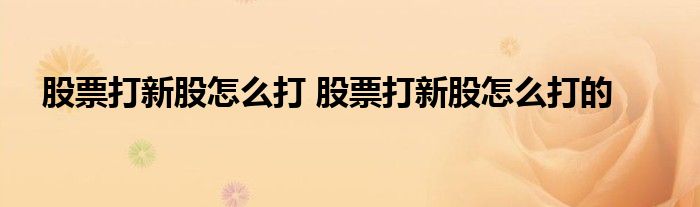 导读 大家好,小元来为大家解答问题。股票打新股怎么打,股票打新股怎么打的,这个很多人还不知道,现在让我们一起来了解下吧!