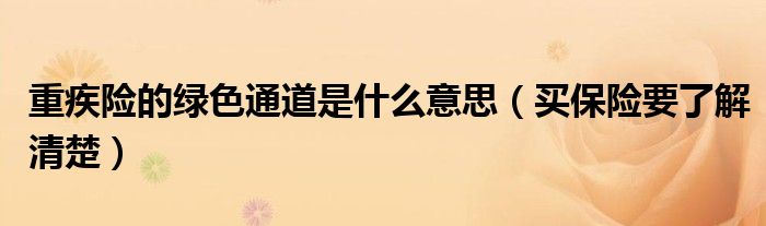 大家好,综合小编来为大家讲解下。重疾险的绿色通道是什么意思,买保险要了解清楚这个很多人还不知道,现在让我们一起来看看吧!