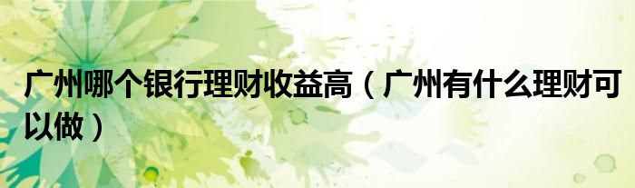 导读 大家好,综合小编来为大家讲解下。广州哪个银行理财收益高,广州有什么理财可以做这个很多人还不知道,现在让我们一起来看看吧!1、据我所知