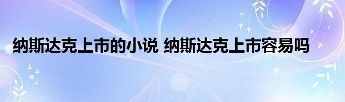 导读 大家好,小元来为大家解答问题。纳斯达克上市的小说,纳斯达克上市容易吗,这个很多人还不知道,现在让我们一起来了解下吧!