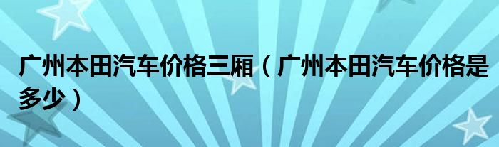 大家好,综合小编来为大家讲解下。广州本田汽车价格三厢,广州本田汽车价格是多少这个很多人还不知道,现在让我们一起来看看吧!