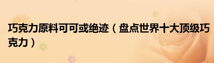 大家好,综合小编来为大家讲解下。巧克力原料可可或绝迹,盘点世界十大顶级巧克力这个很多人还不知道,现在让我们一起来看看吧!