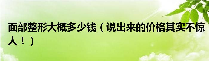 导读 大家好,综合小编来为大家讲解下。面部整形大概多少钱,说出来的价格其实不惊人!这个很多人还不知道,现在让我们一起来看看吧!1、目前来说
