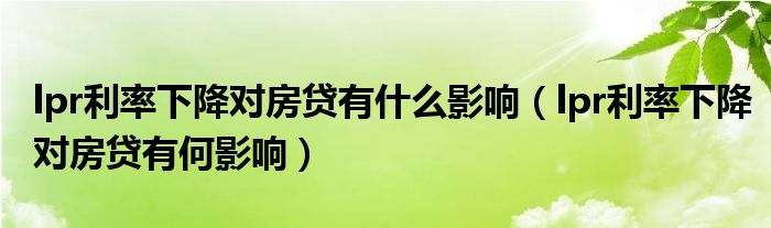 导读 大家好,综合小编来为大家讲解下。lpr利率下降对房贷有什么影响,lpr利率下降对房贷有何影响这个很多人还不知道,现在让我们一起来看看吧!1